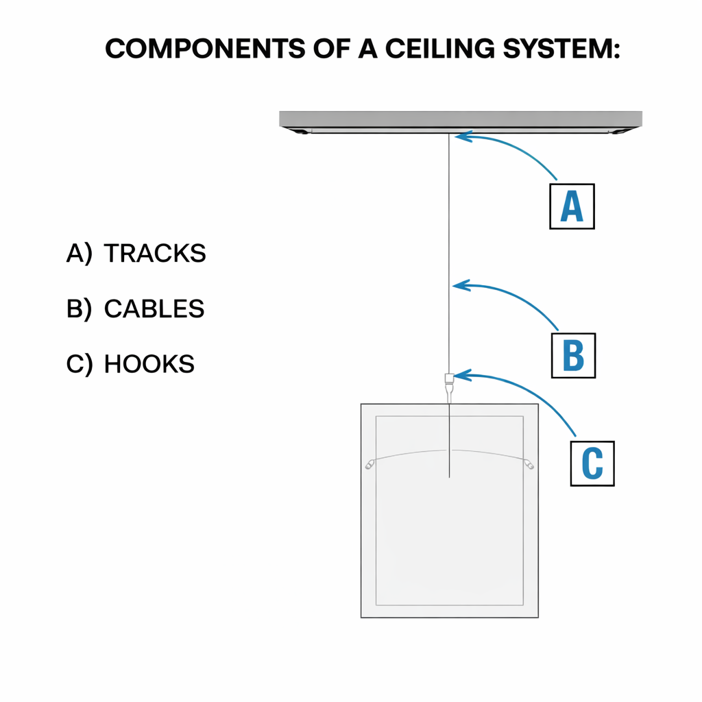 Tracks or Mounting Points – The anchor that secures the system to a wall, ceiling, or structural surface.