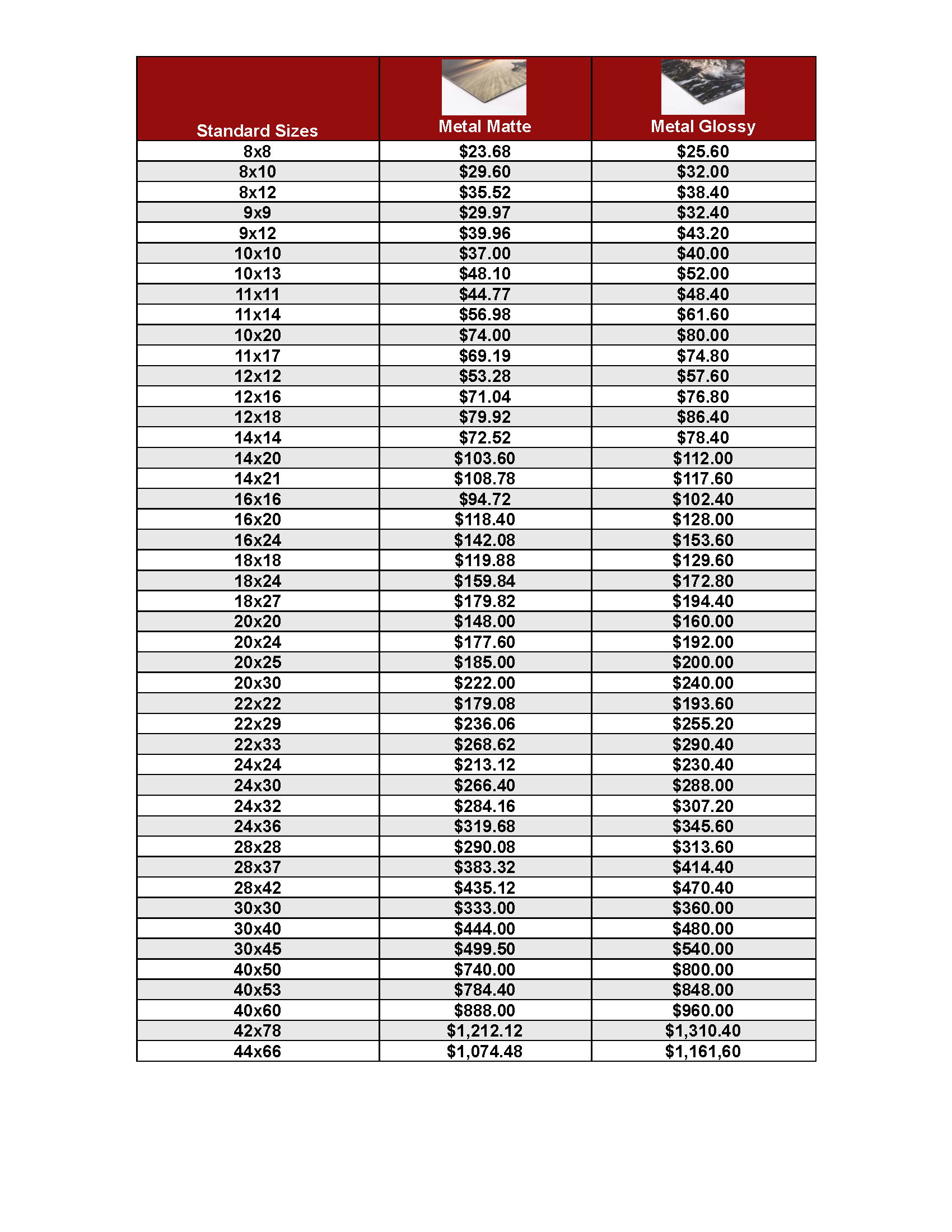 Most metals today are a result of a printing method called dye sublimation. It’s like an iron on t-shirt that gas exchanges the ink by way of heat, which can effect the quality of your prints detail. Our metal panels bypass that process maximizing your prints potential. Try out metal panels and see your photographs full potential.